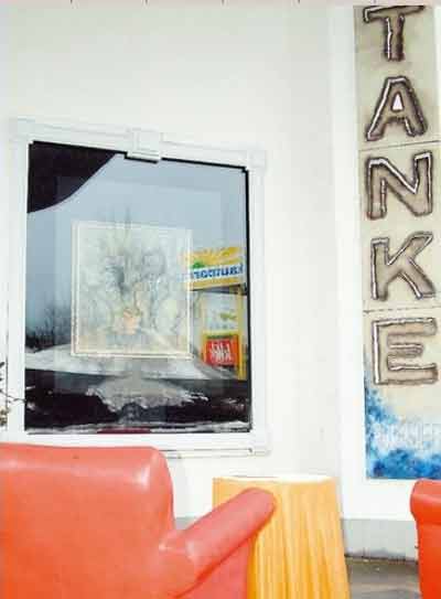 Die Freiluftgalerie an der „Tanke“ zeigt das Bild „Familie“ von Barbara Stewen. . Foto: F. Zacharias