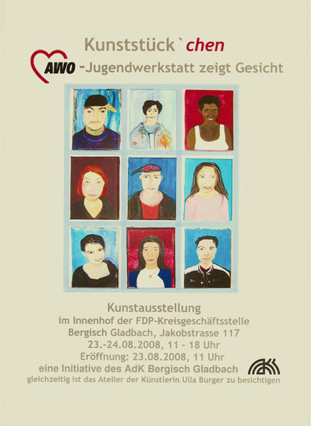Plakat zur Ausstellung Kunststück’chen der AWO-Jugendwerkstatt. Die Patenschaft zu dieser Ausstellung übernahm der AdK - Arbeitskreis der Künstler Bergisch Gladbach e.V.