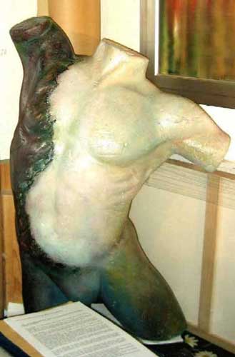 2006 alter, weißer Styropor-Torso aus der Auflösung eines Wäschegeschäftes mit Acrylfarben bemalt 79 cm hoch, © Barbara Stewen VG Bild-Kunst, Köln 2024